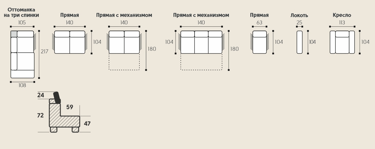 Мадрид - это модульная система. На представленной угловой модели дивана: